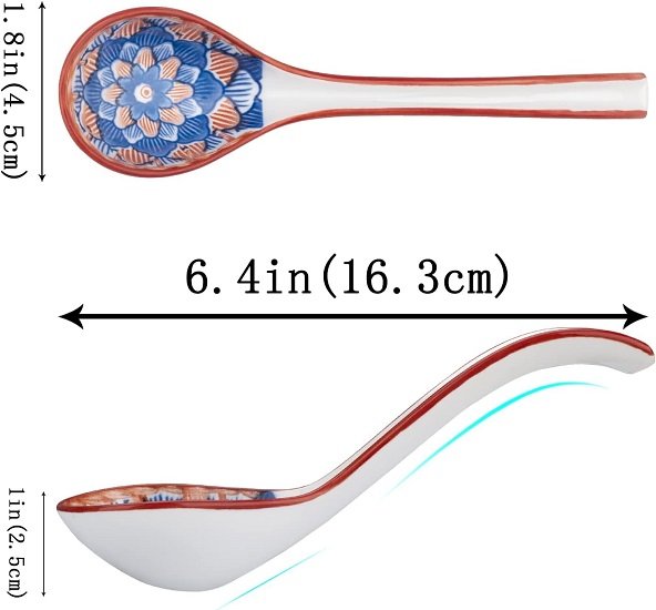 【Longer】6.4 inches in length designed for a comfortable grip to keep your hands away from hot soup. You can spoon up more food at a time and enjoy your meal. Curved tail design, the spoon does not easily slide into the bowl as a whole.